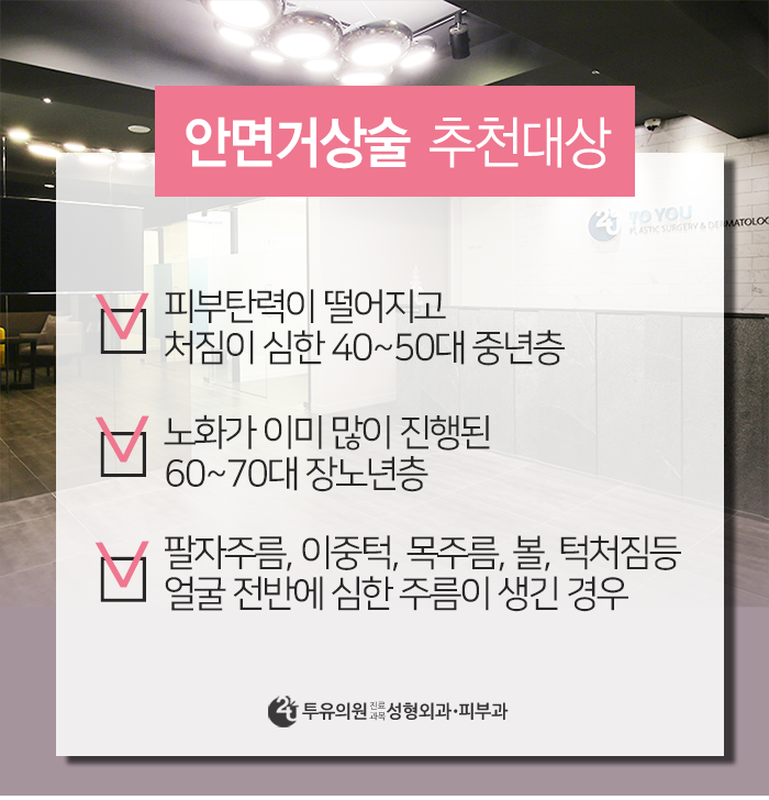 안면거상술 성형외과 투유은 턱선 볼선 목선을 리프팅하는데